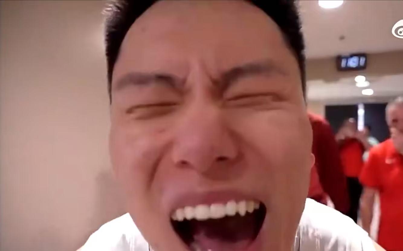 比赛结束之后,中国男篮众将在更衣室里疯狂庆祝,作为奇兵的李弘权冲着镜头怒吼,完全释放了自己的情绪。